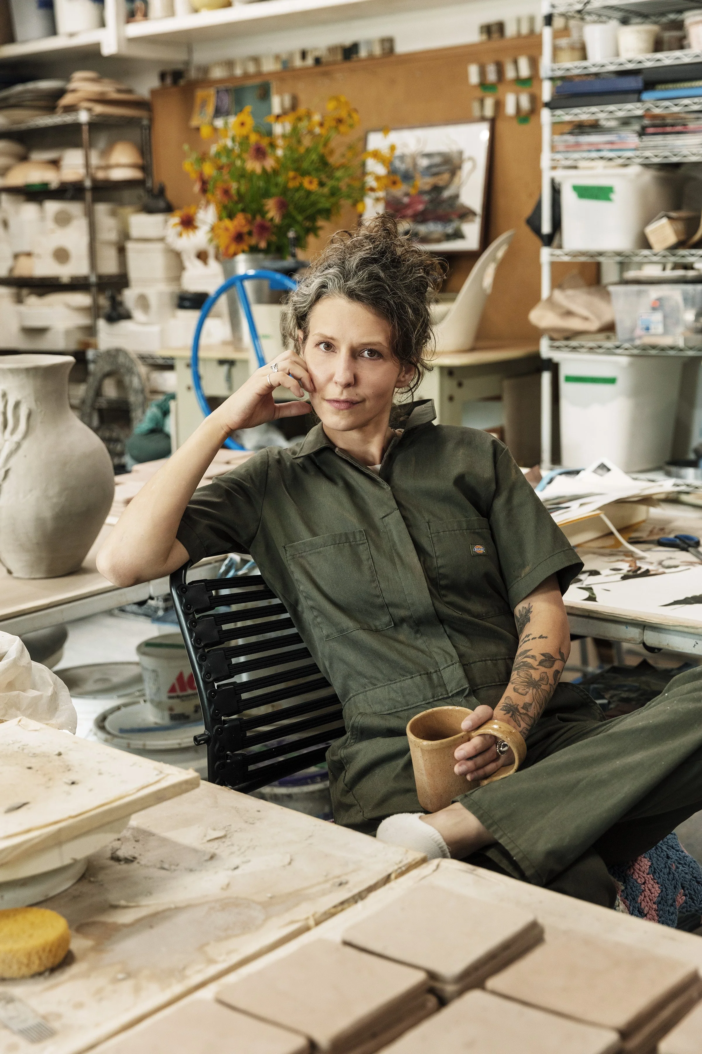 Nicole Helen Brunner (she/her) is visual artist and sculptor working in collage, painting, textiles, and ceramics. Her work is grounded in a sustained engagement of material transformation utilizing found everyday materials like magazines, aluminum cans, plastic, synthetic clothing, pottery and more to investigate grief, mortality, gender norms and environmental themes through a feminist perspective. Initially trained as a drawer and painter at Ramapo College of NJ, Parson's School of Design, and the Art Student's League of NY Nicole’s artistic practice has evolved to include a deep passion for ceramics, mixed media and textiles. She opened a community pottery studio in Brooklyn, NY where she taught and provided guidance to upwards of 50 members. In 2019 Nicole relocated to the bucolic landscape of Mountaindale, NY, There she built out an art studio that is powered by solar energy and rainwater, making it an environmentally sustainable workspace.