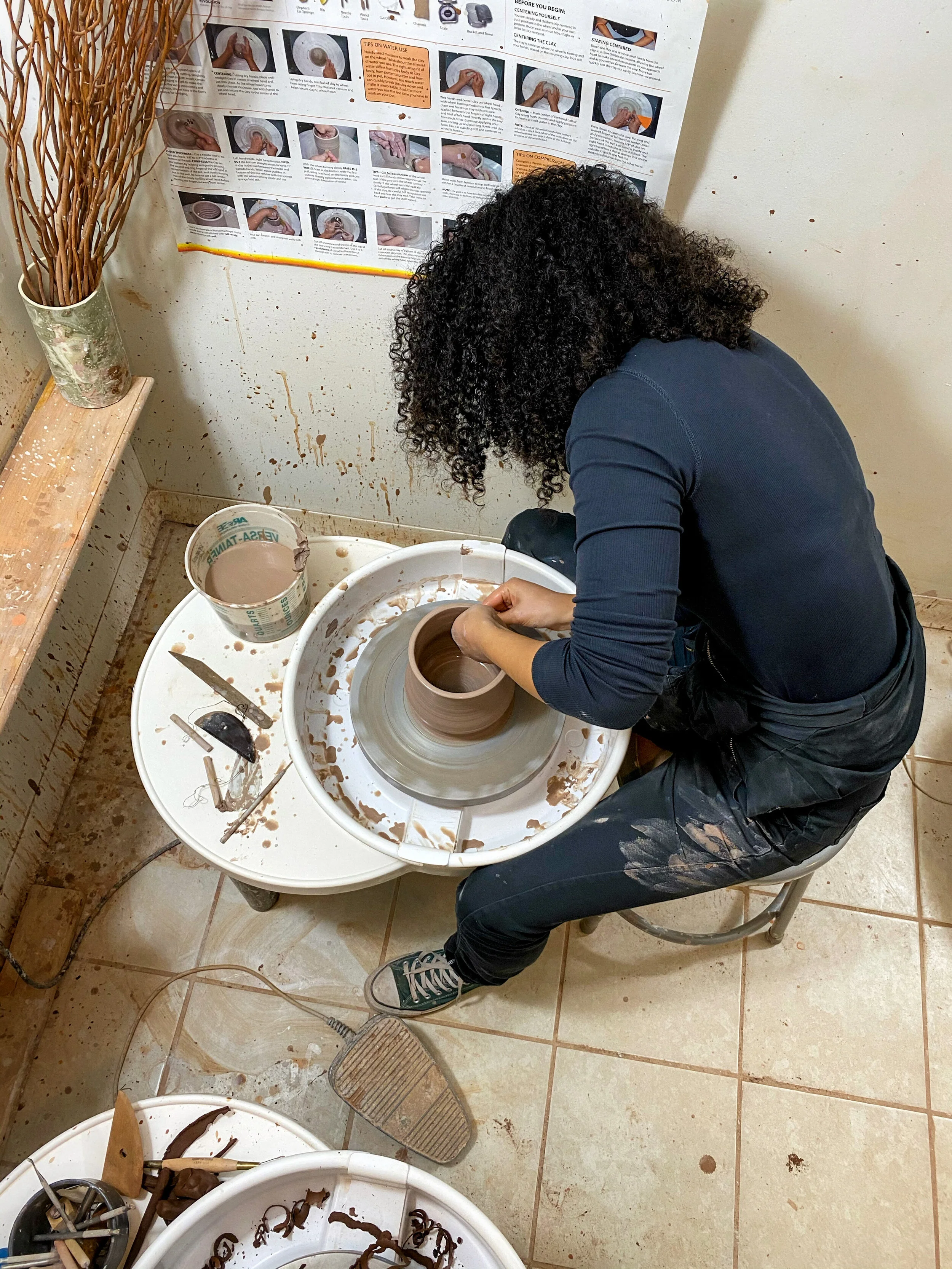 I’ve been working with clay for about a year and a half. I took one class back in 2018, but I am mostly self-taught. When I began throwing I was dealing with a lot of anxiety and I was desperate for a way to occupy my mind. The repetition and control required was calming and centering. I was instantly addicted. A few years prior I had been going through intense therapy. For a good portion of my life I have struggled with severe anxiety and OCD. Coincidentally, one of the most effective techniques I was given to cope when I was feeling anxious was to sit down and imagine something spinning. I would focus on and control the speed, slowing down and speeding up, until I felt my heart rate slow and my breath return to a normal pattern. Wheel throwing has a similar quality with a hands-on application. Throwing has given me a physical outlet for the tension I feel inside, but I think the reason I am drawn back to it is because it gives me the opportunity to take parts of myself that I have always looked down on and create something beautiful from them.